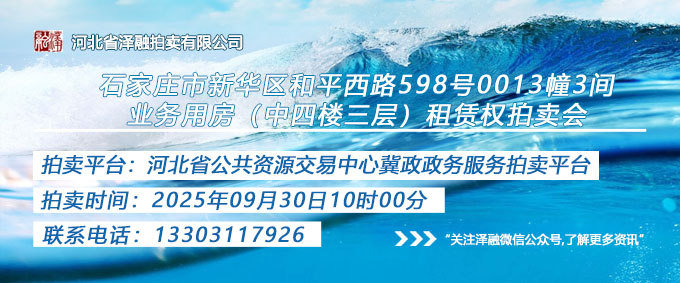 • 石家莊市新華區(qū)和平西路598號0013幢3間業(yè)務(wù)用房(中四樓三層)租賃權(quán)拍賣公告20250930 2025-09-23